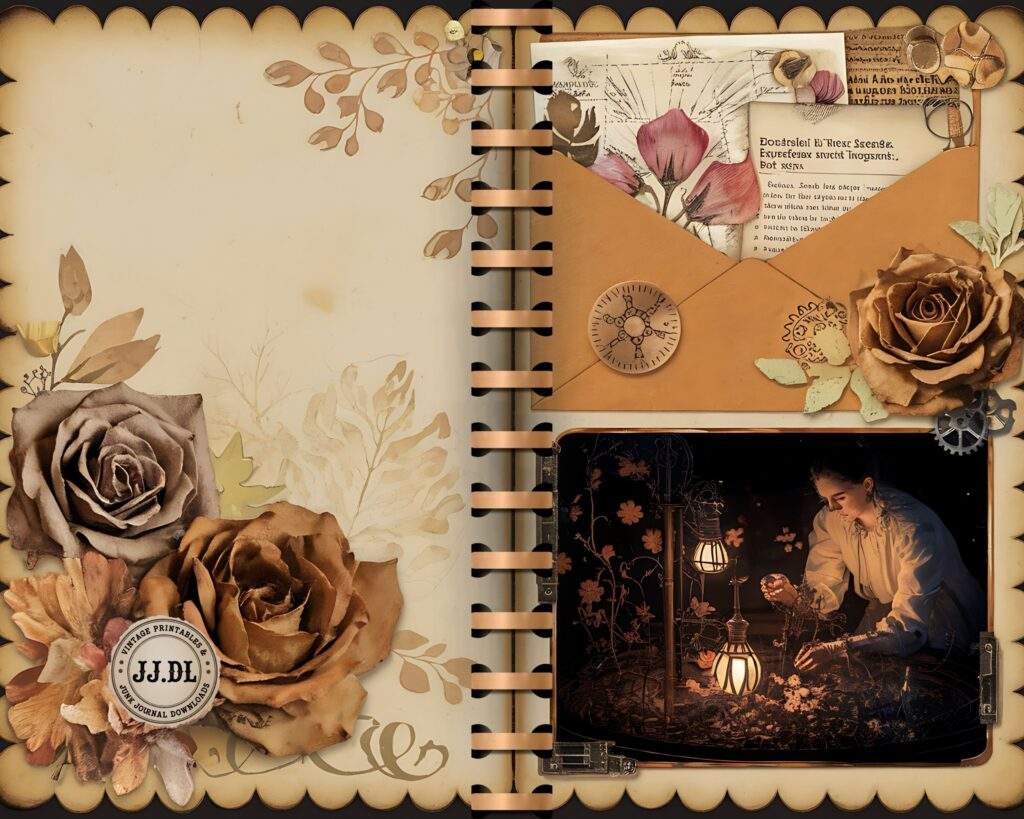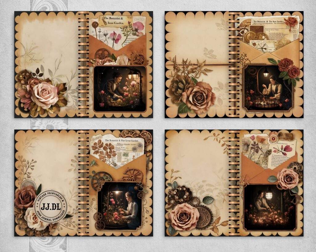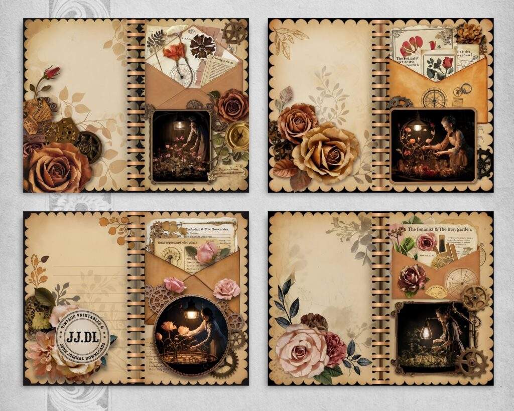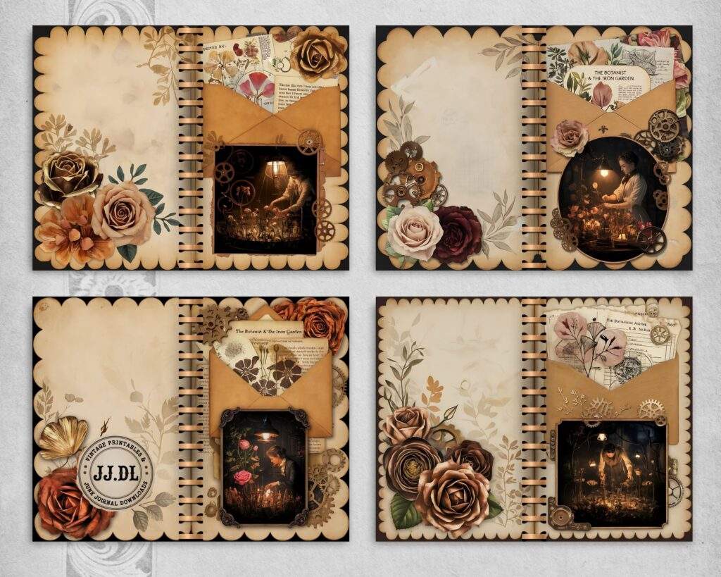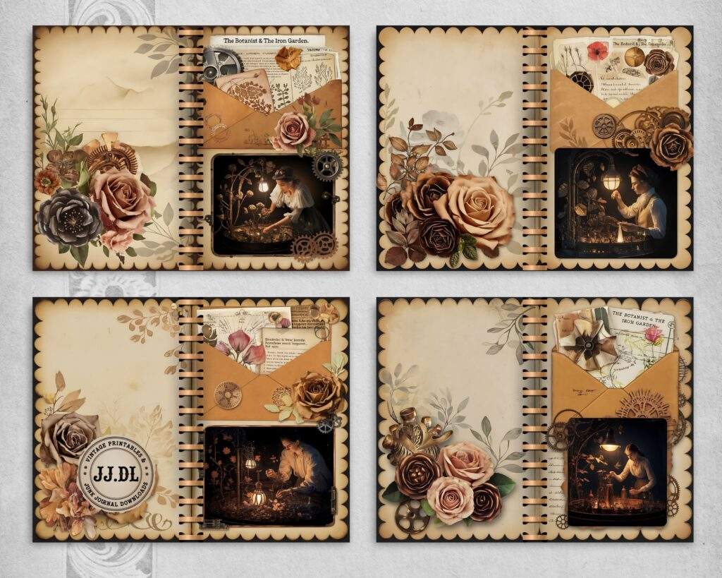 Step into a world where nature meets machinery with “The Botanist & The Iron Garden”, a 20-page romantic steampunk junk journal kit that blends botanical beauty with vintage industrial charm.