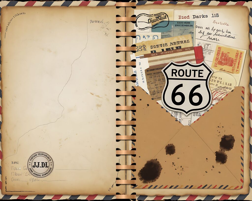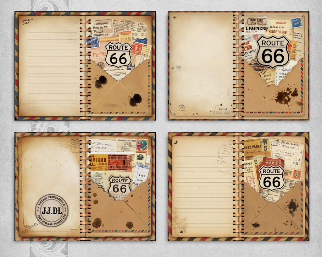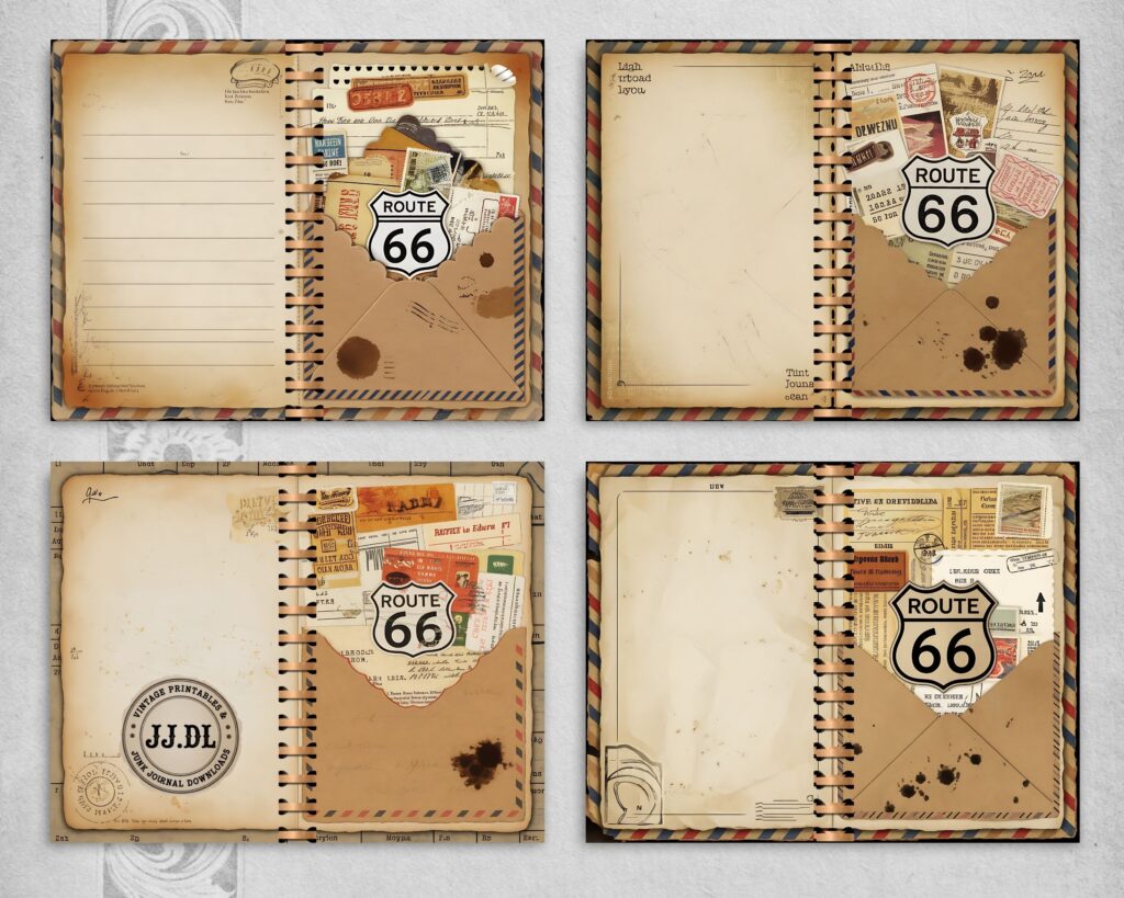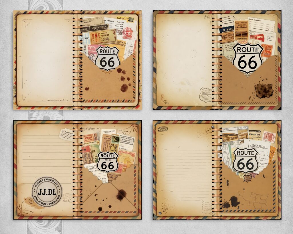Vintage Route 66 Junk Journal Pages, Road Atlas Printable, Travel Collage Ephemera, Retro Scrapbook Supplies, Aged Paper Kit