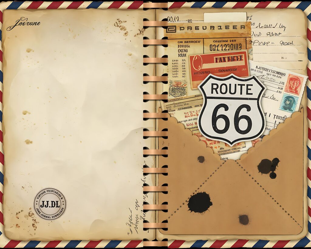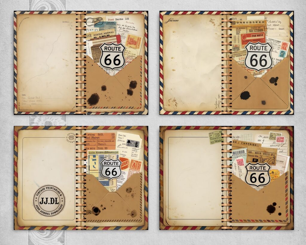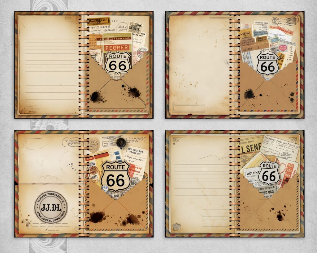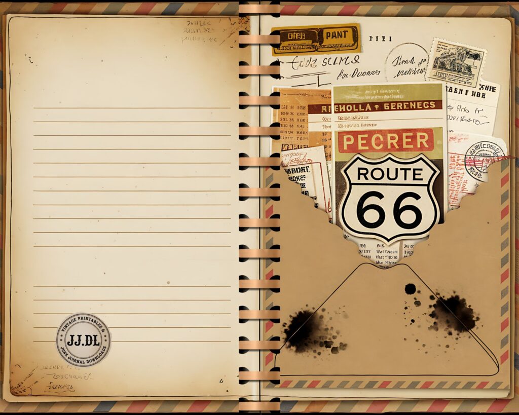 Vintage Route 66 Junk Journal Pages, Road Atlas Printable, Travel Collage Ephemera, Retro Scrapbook Supplies, Aged Paper Kit
