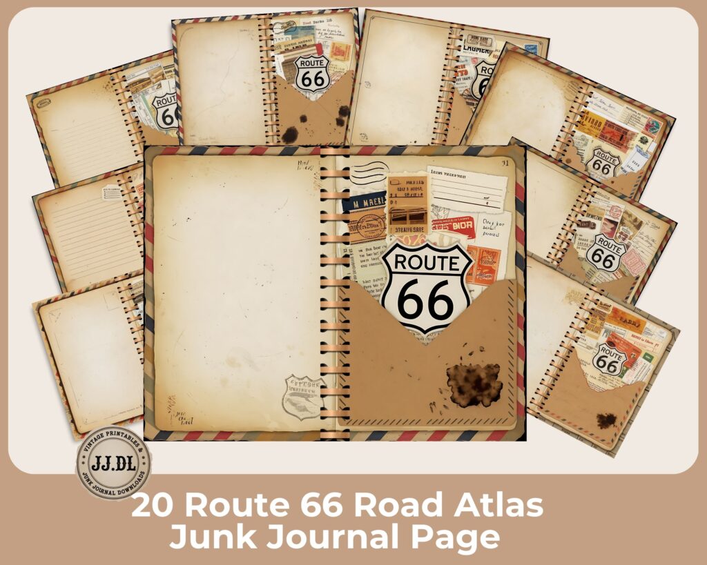 Vintage Route 66 Junk Journal Pages, Road Atlas Printable, Travel Collage Ephemera, Retro Scrapbook Supplies, Aged Paper Kit