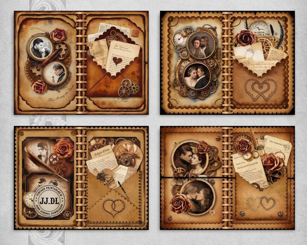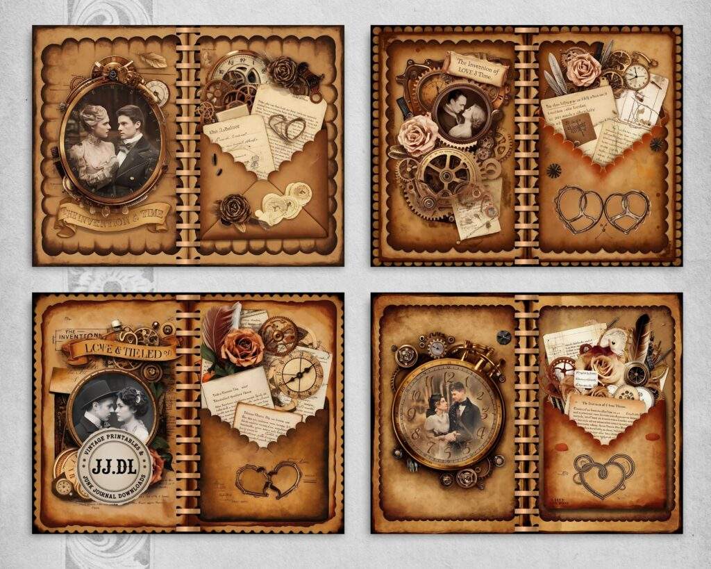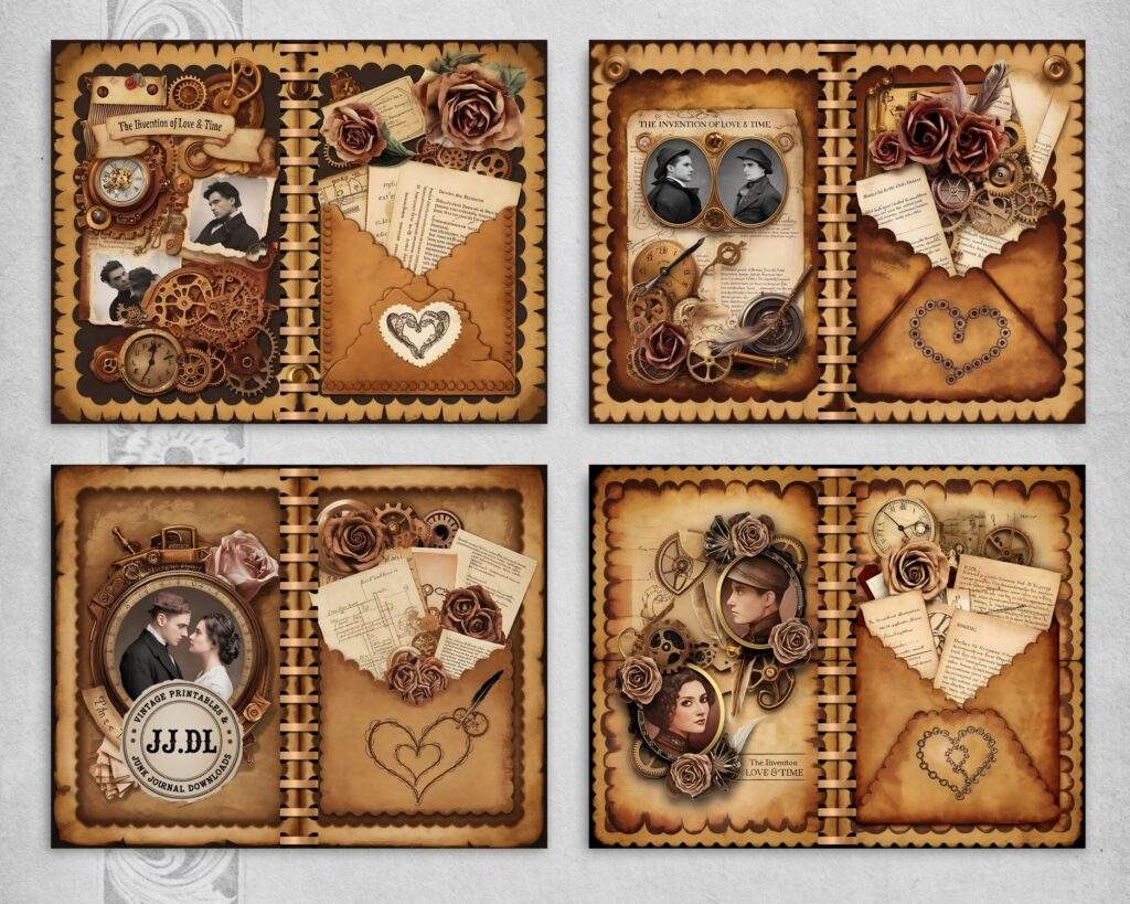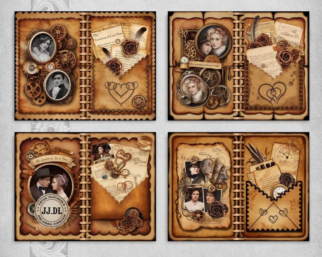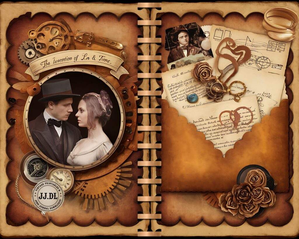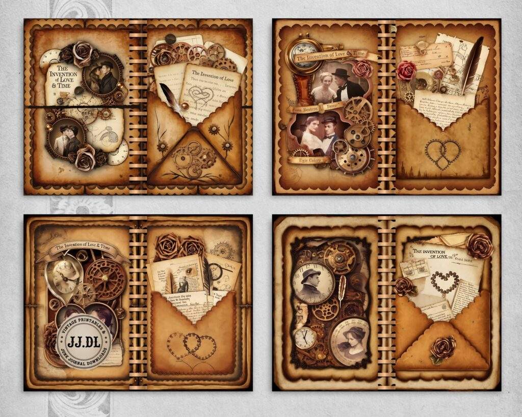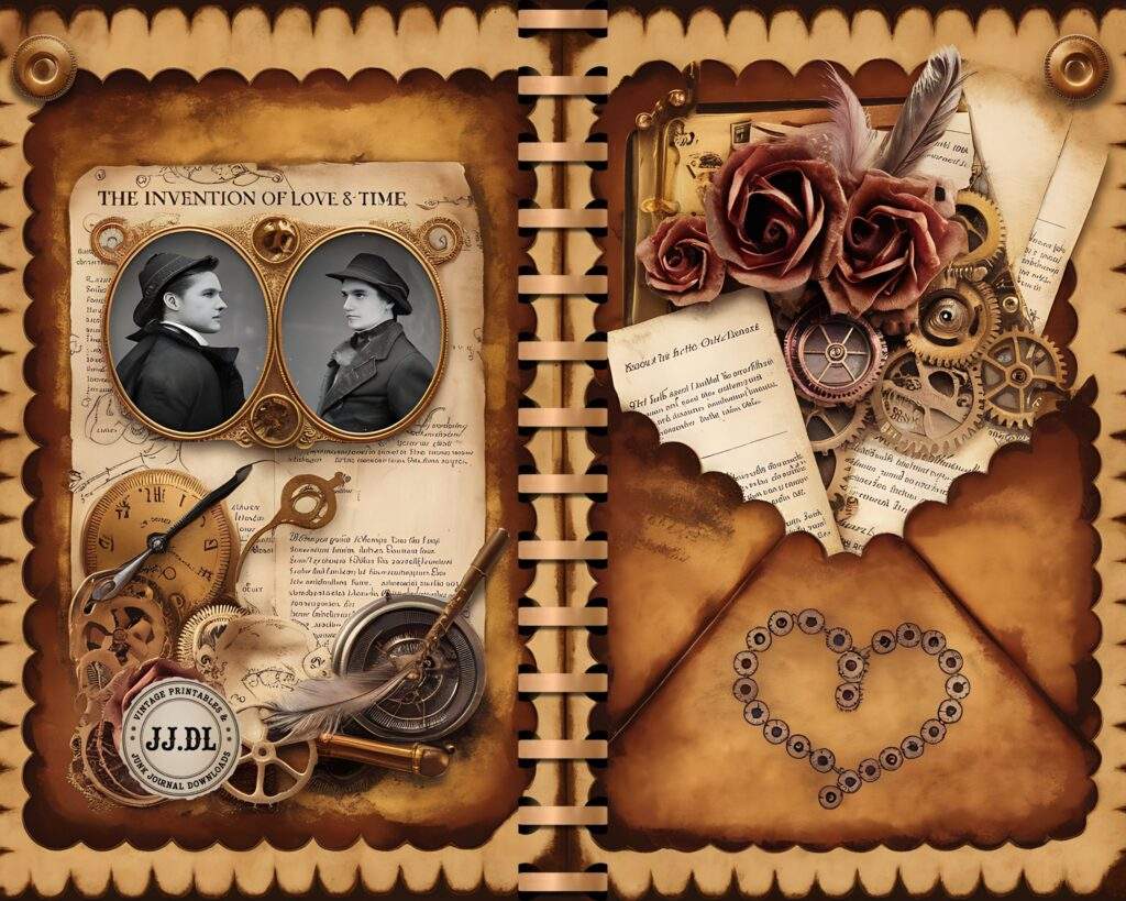 The Invention of Love & Time – Romantic Victorian Steampunk Junk Journal Kit | 20 Printable Atlas Pages, Vintage Collage Paper, Scrapbook Supplies