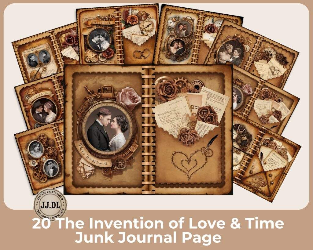 The Invention of Love & Time – Romantic Victorian Steampunk Junk Journal Kit | 20 Printable Atlas Pages, Vintage Collage Paper, Scrapbook Supplies