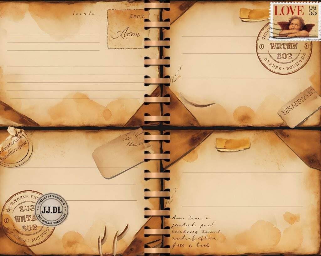 These softly illuminated pages capture the warmth of candlelight and the timeless charm of handwritten letters — an elegant base for your own journaling, correspondence, or mixed-media collage work.