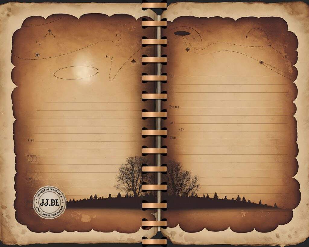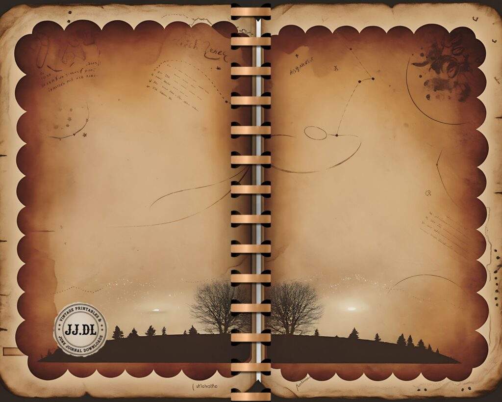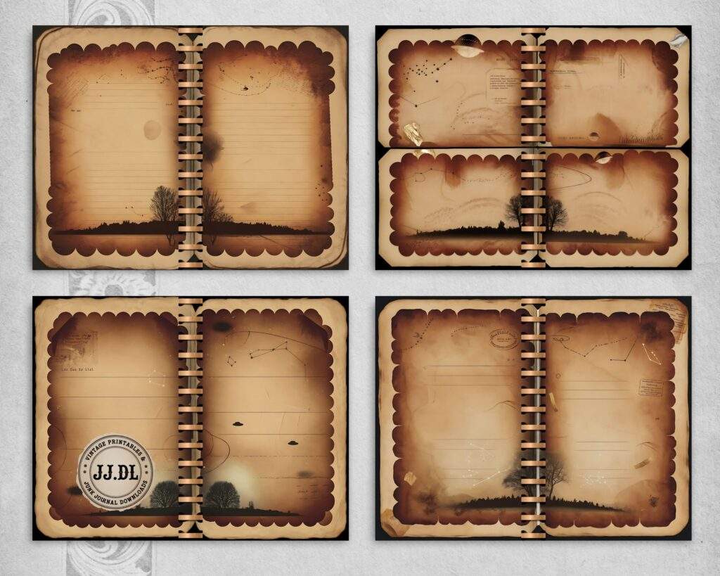 Uncover a quiet mystery with “Volume X: The Visitors of Hollow Field,” a 20-page vintage steampunk junk journal kit blending celestial intrigue with antique romance.