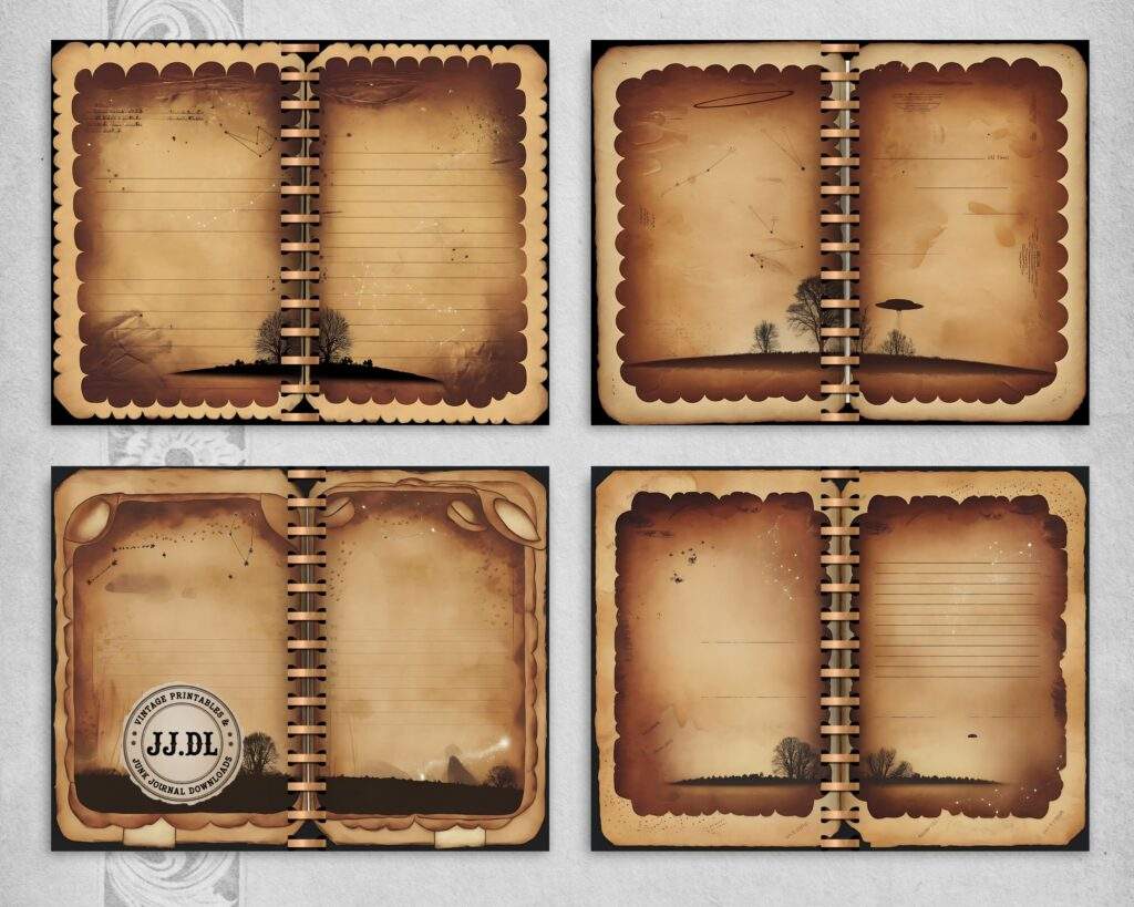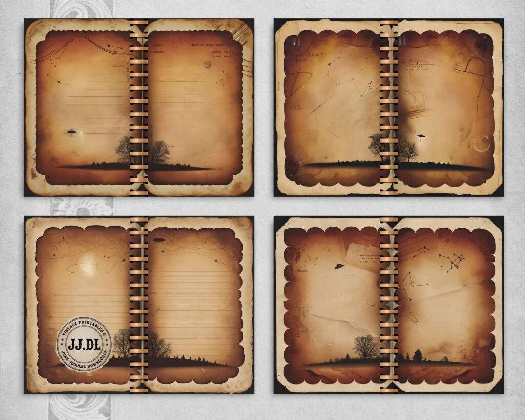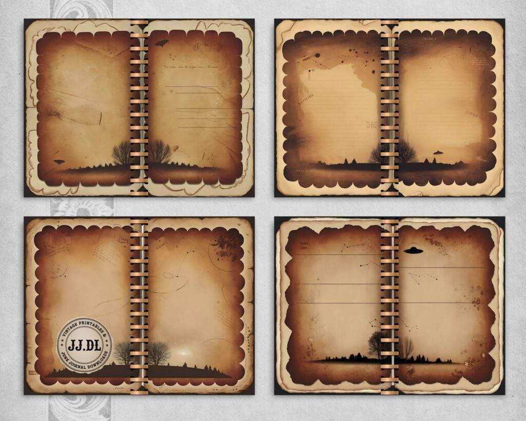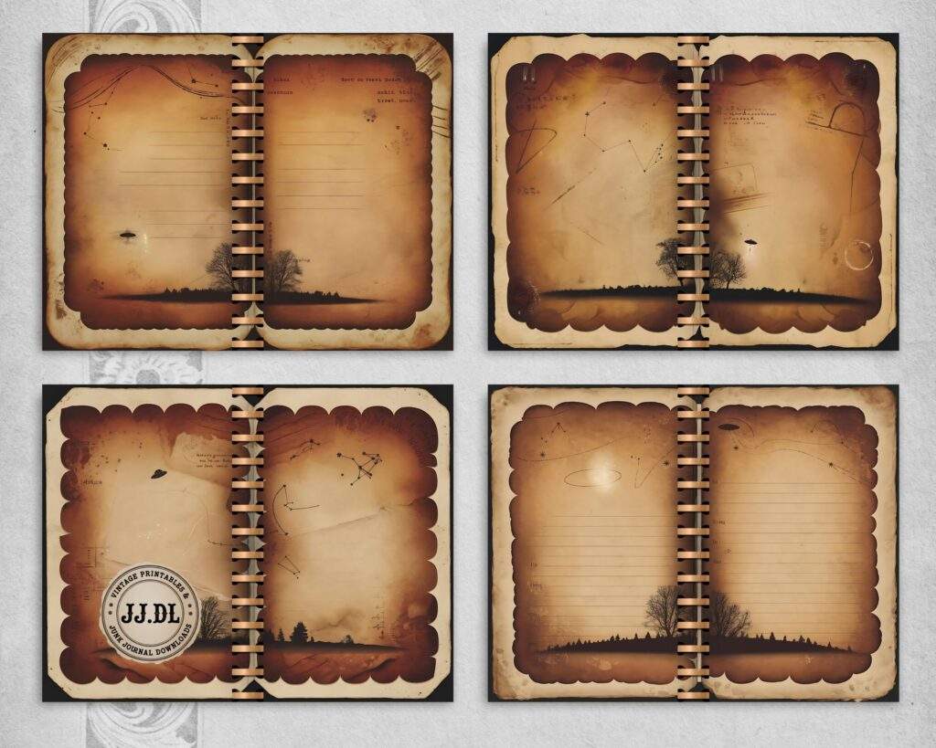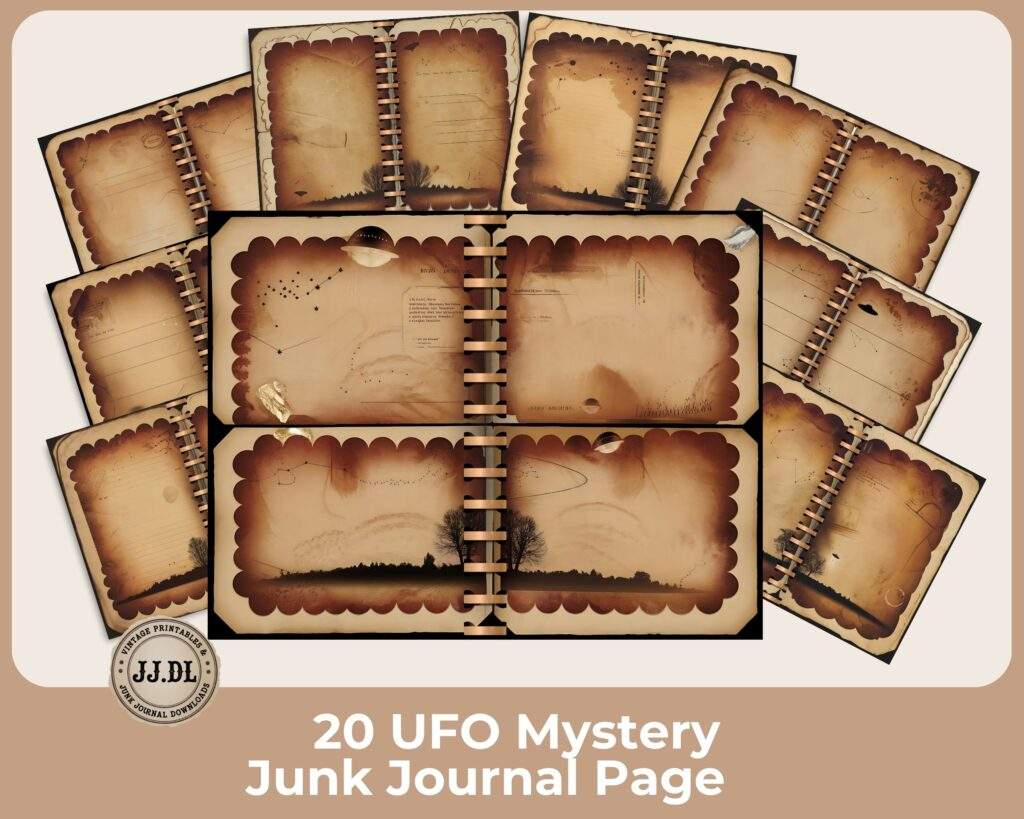 The Visitors of Hollow Field Junk Journal Kit – 20 Vintage UFO-Inspired Printable Pages, Tea-Stained Parchment, Steampunk Journal Paper, Scrapbook Supplies