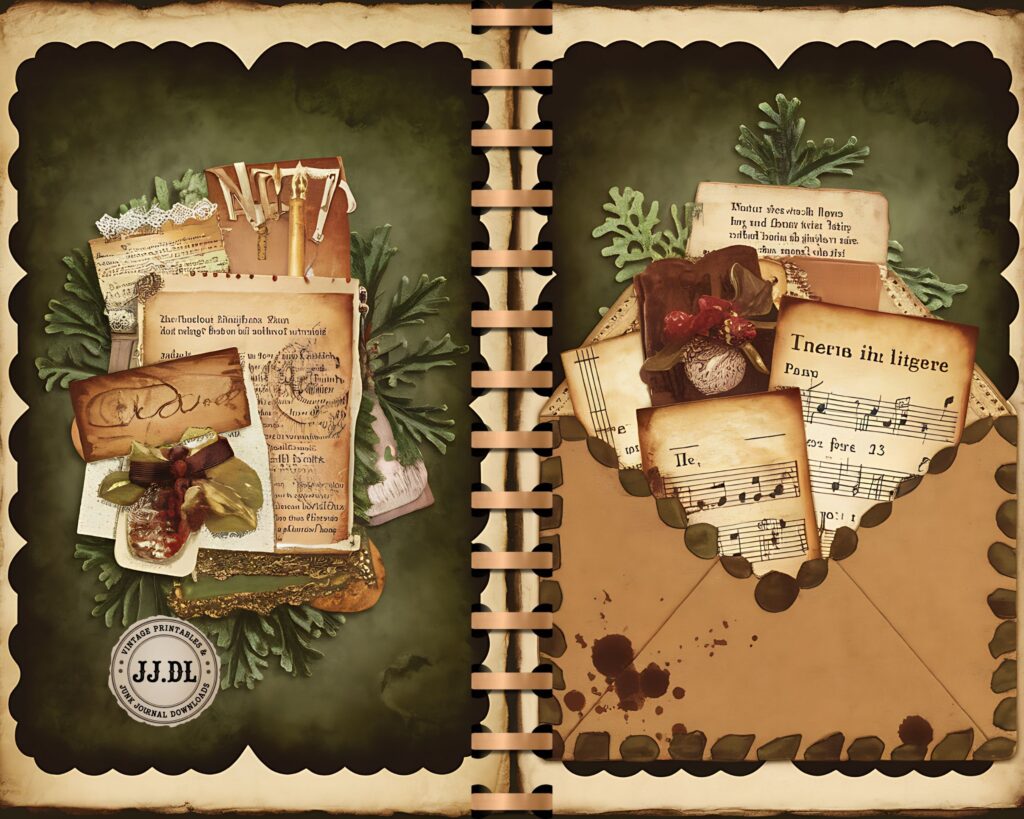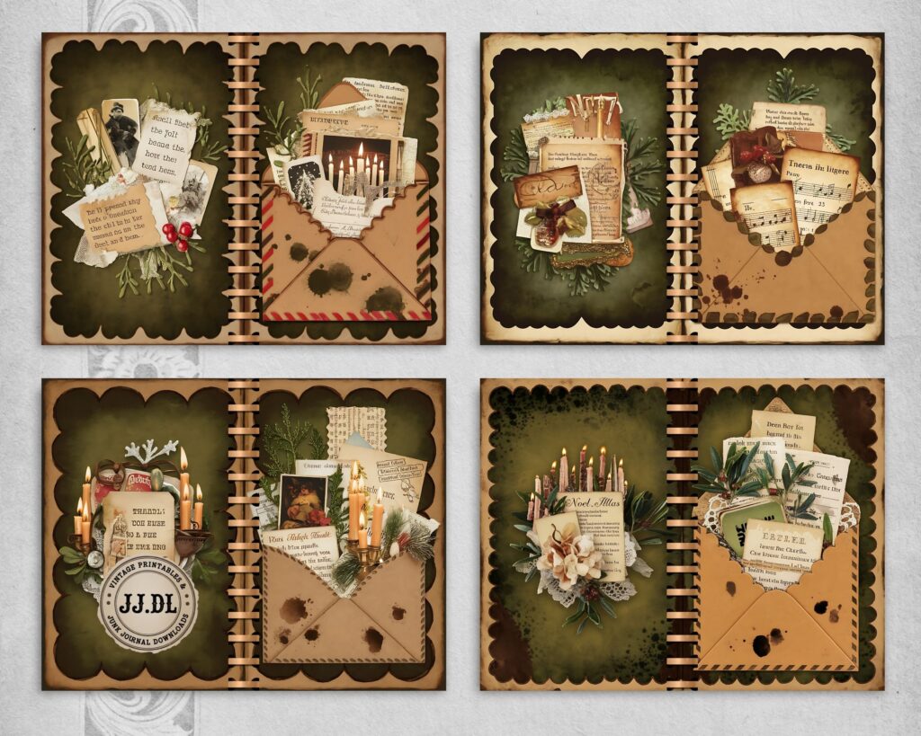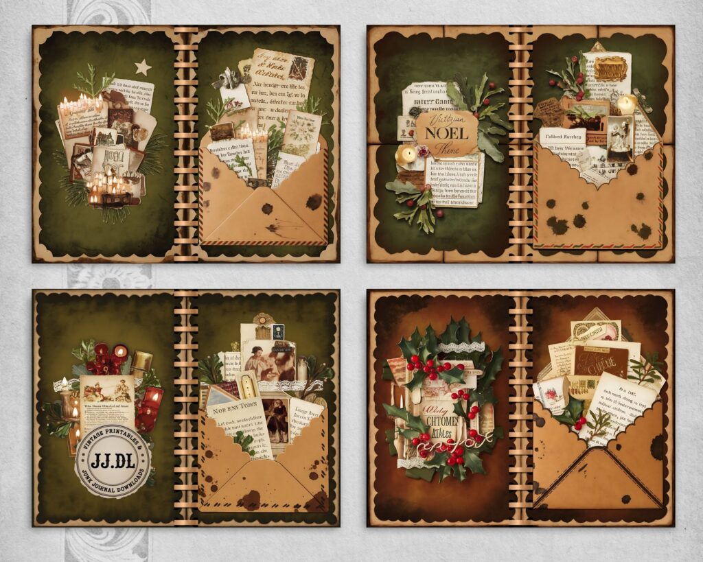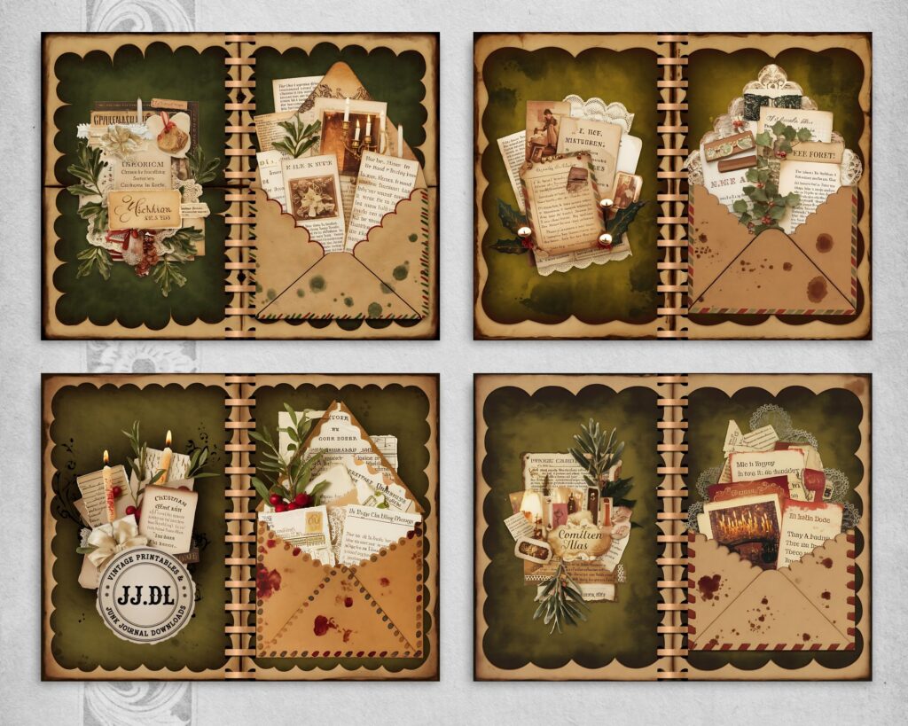 Step back into the elegance of a bygone Christmas with the Victorian Noel Junk Journal Kit — a 20-page printable vintage collection inspired by timeless Victorian holiday charm. Each page is beautifully crafted on tea-stained parchment with scalloped edges, aged folds, and ink distressing in forest green and antique gold, evoking a nostalgic Christmas glow.