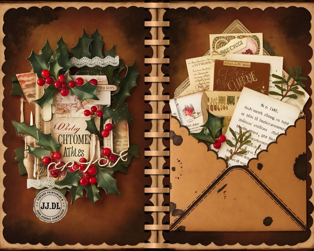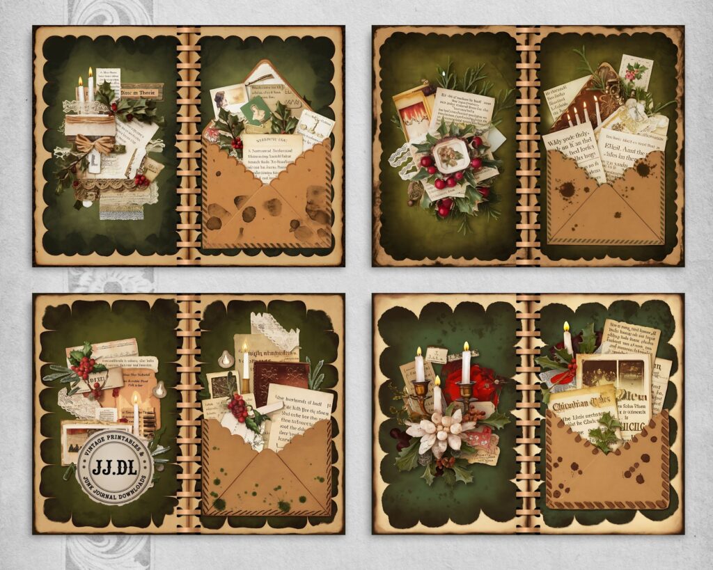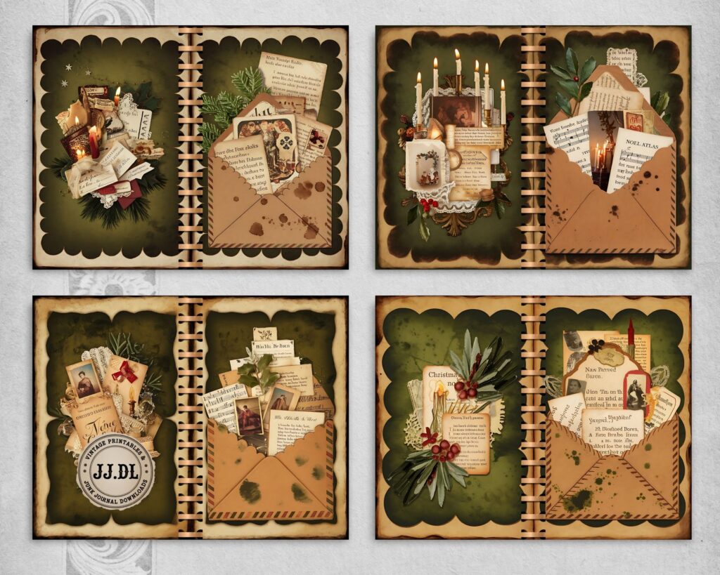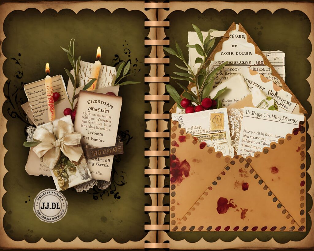 Step back into the elegance of a bygone Christmas with the Victorian Noel Junk Journal Kit — a 20-page printable vintage collection inspired by timeless Victorian holiday charm. Each page is beautifully crafted on tea-stained parchment with scalloped edges, aged folds, and ink distressing in forest green and antique gold, evoking a nostalgic Christmas glow.