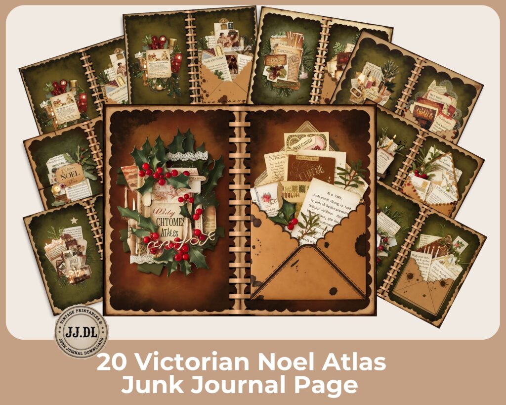 Victorian Noel Junk Journal Kit – 20 Vintage Christmas Atlas Pages | Antique Holiday Printable, Scrapbook Supplies