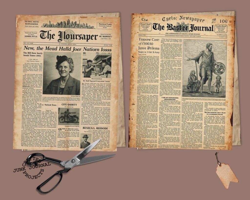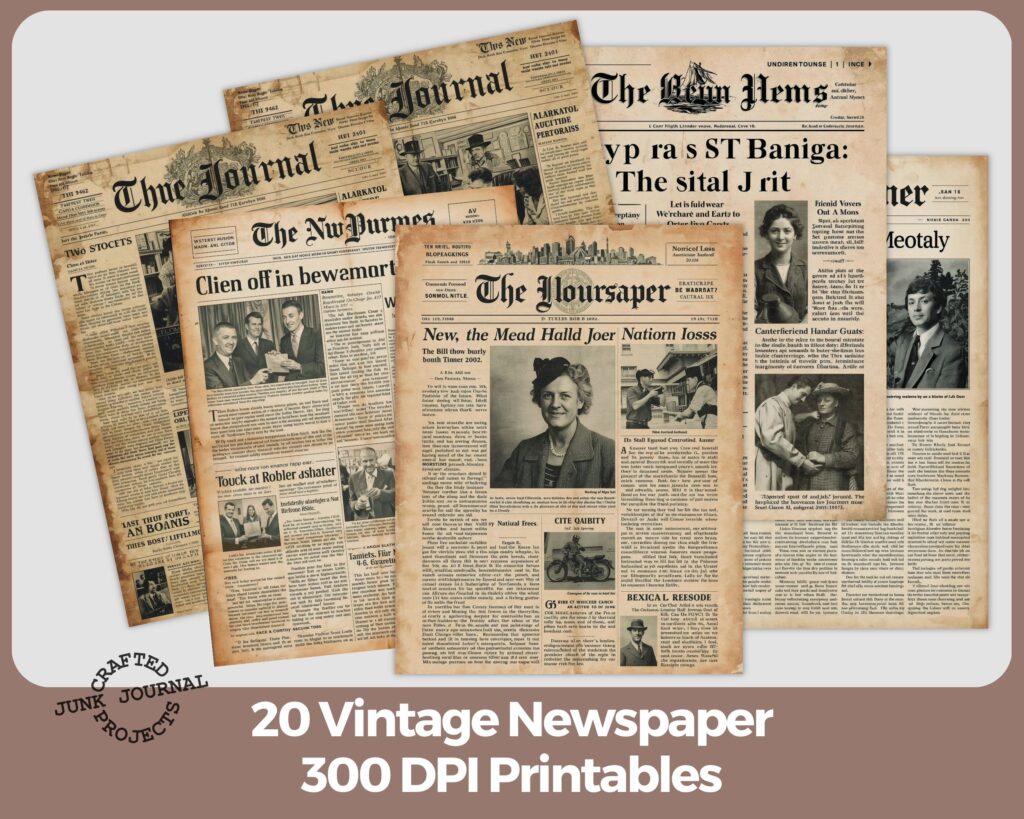 Vintage Newspaper Printable Pages, Old Paper Ephemera, Antique News Collage Sheets, Junk Journal Supplies, Scrapbook Kit