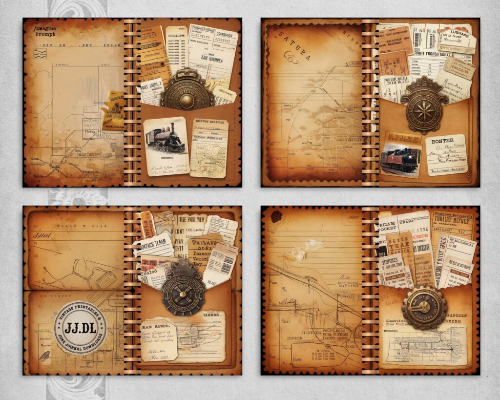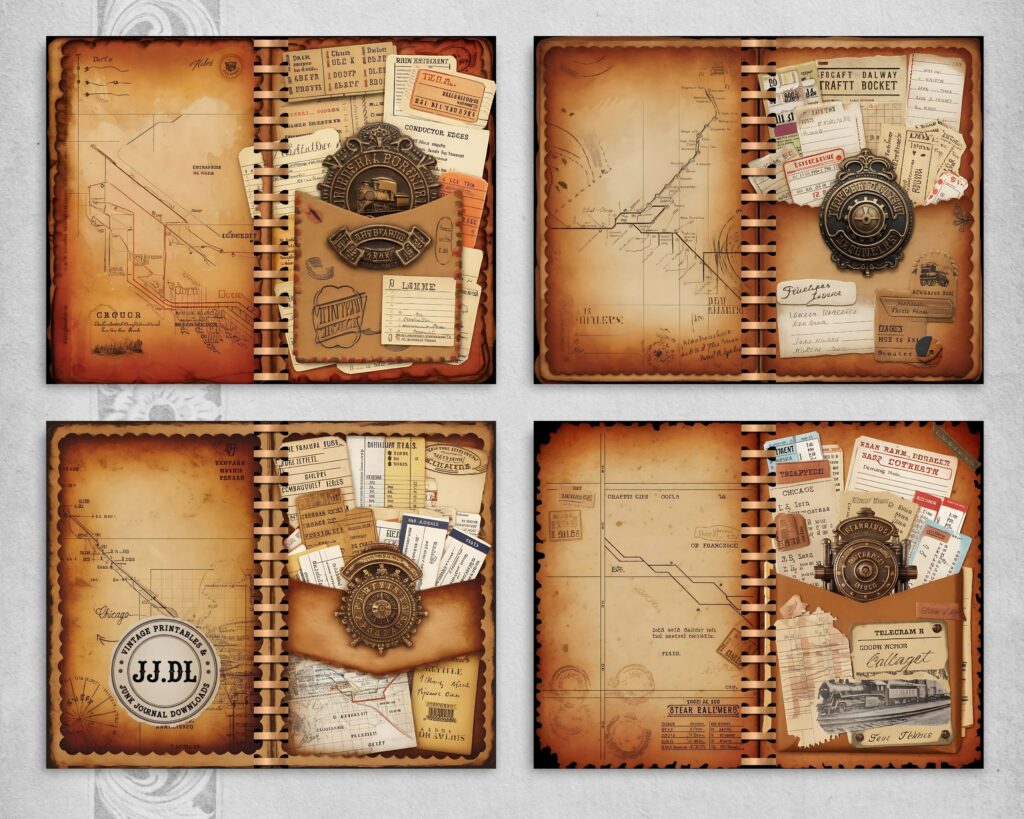 Steam Railway Vintage Junk Journal Kit – 20 Printable Train Ephemera Pages & Antique Travel Collage Papers, Scrapbook Supplies