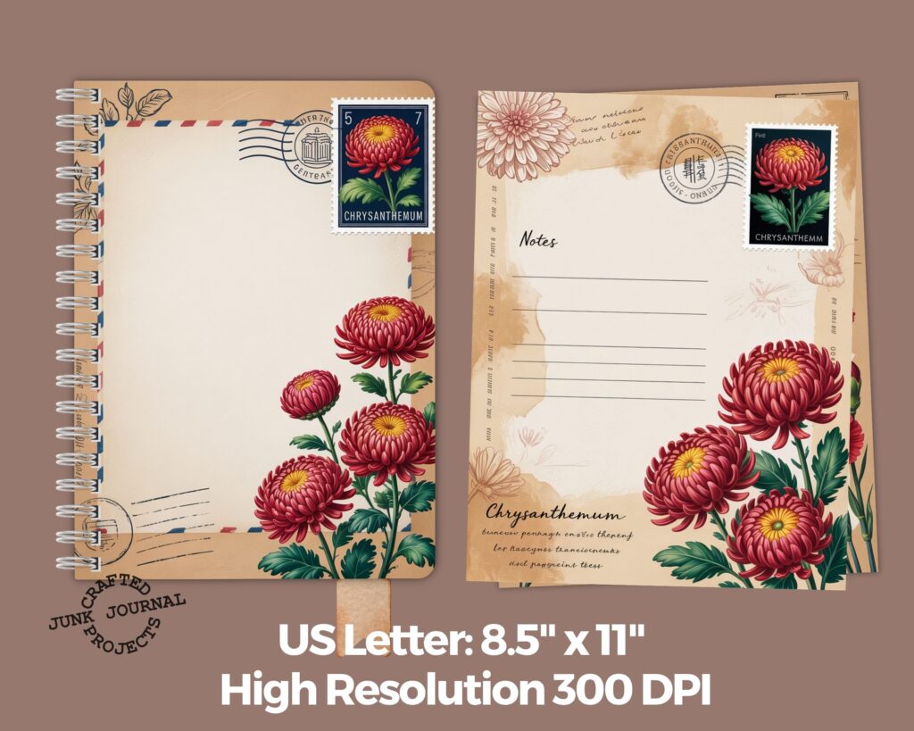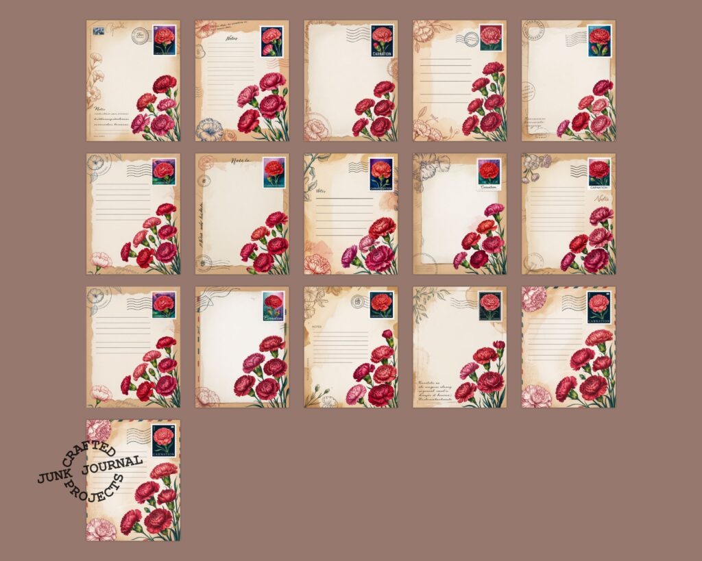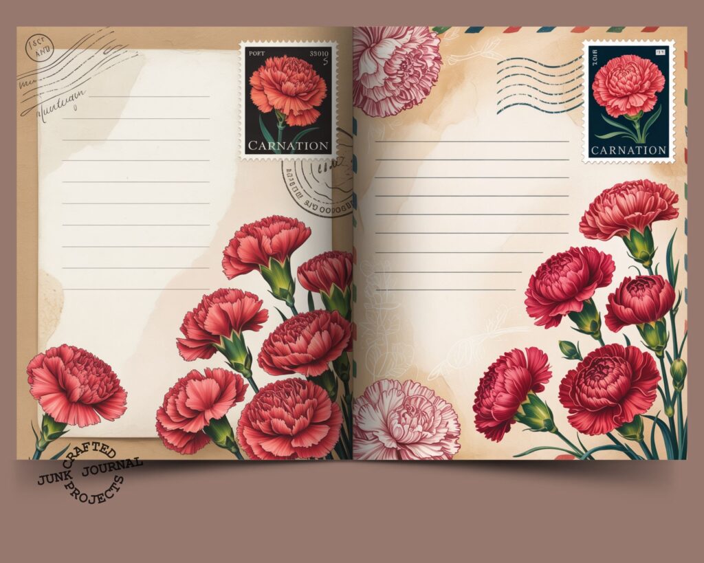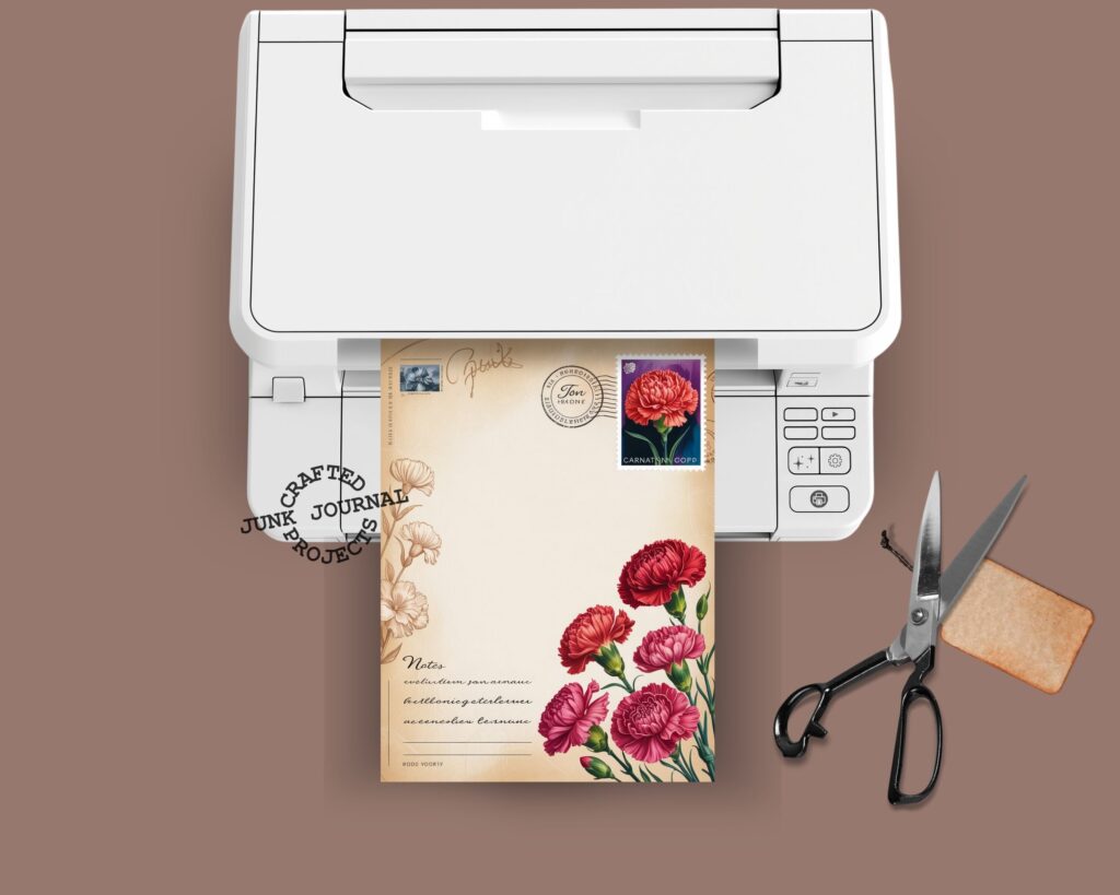 January Carnation Birth Flower Journal Pages, Menstrual & Daily Notes Printable, Junk Journal Supplies, Vintage Scrapbook Kit