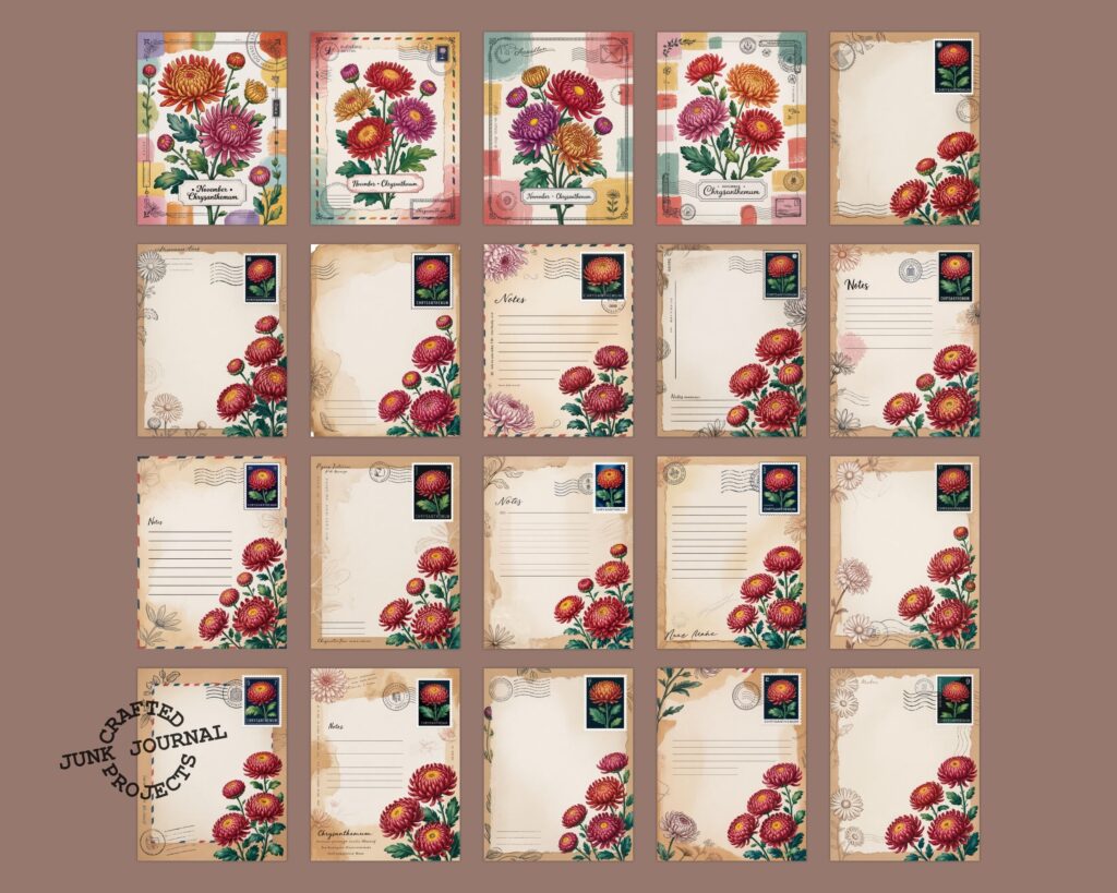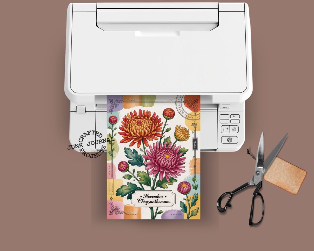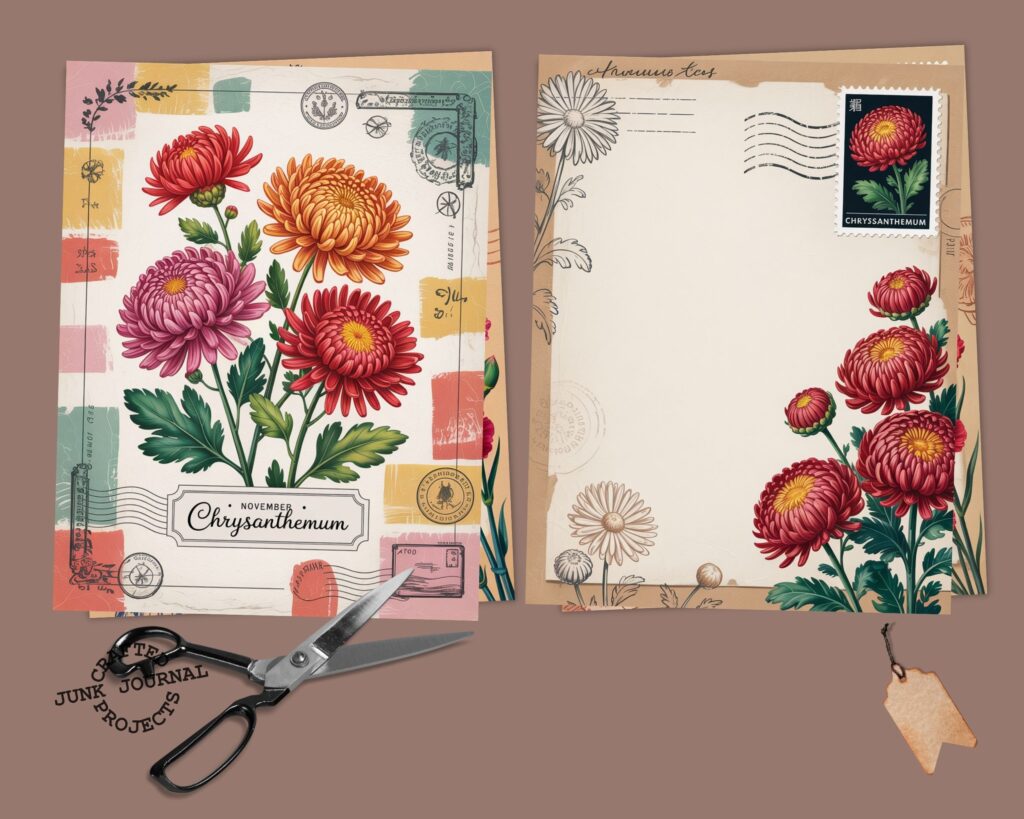 November Chrysanthemum Birth Flower Journal Pages, Menstrual & Daily Notes Printable, Junk Journal Supplies, Vintage Scrapbook Kit